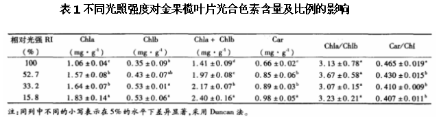 一、光照强度对叶片光合色素含量的影响