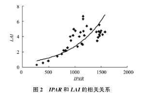 通过光合有效辐射计的研究分析并结合表1,我们可以从中得知,不同播期和播量对小麦冠层截获光合有效辐射量有着较大的影响。从小麦整个生育期来看,随着播期的推迟,光合有效辐射量呈减小趋势。而光合有效辐射量与叶面积指数呈相同的变化趋势,即叶面积指数大的小麦群体,有利于冠层截获光合有效辐射。图2是不同播期小麦各生育期的光合有效辐射量与叶面积指数相关关系图(n=36),可以看出光合有效辐射量和叶面积指数呈指数正相关。